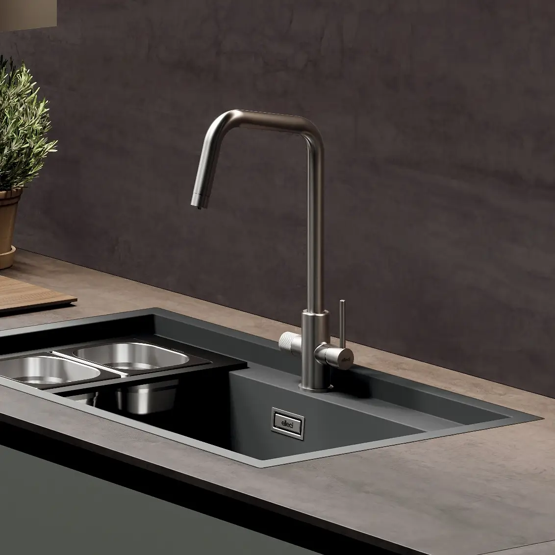 La doccetta permette di raggiungere facilmente ogni angolo del lavello con una estrema facilità e in grado di rendere il lavello un’area di lavoro multifunzionale.