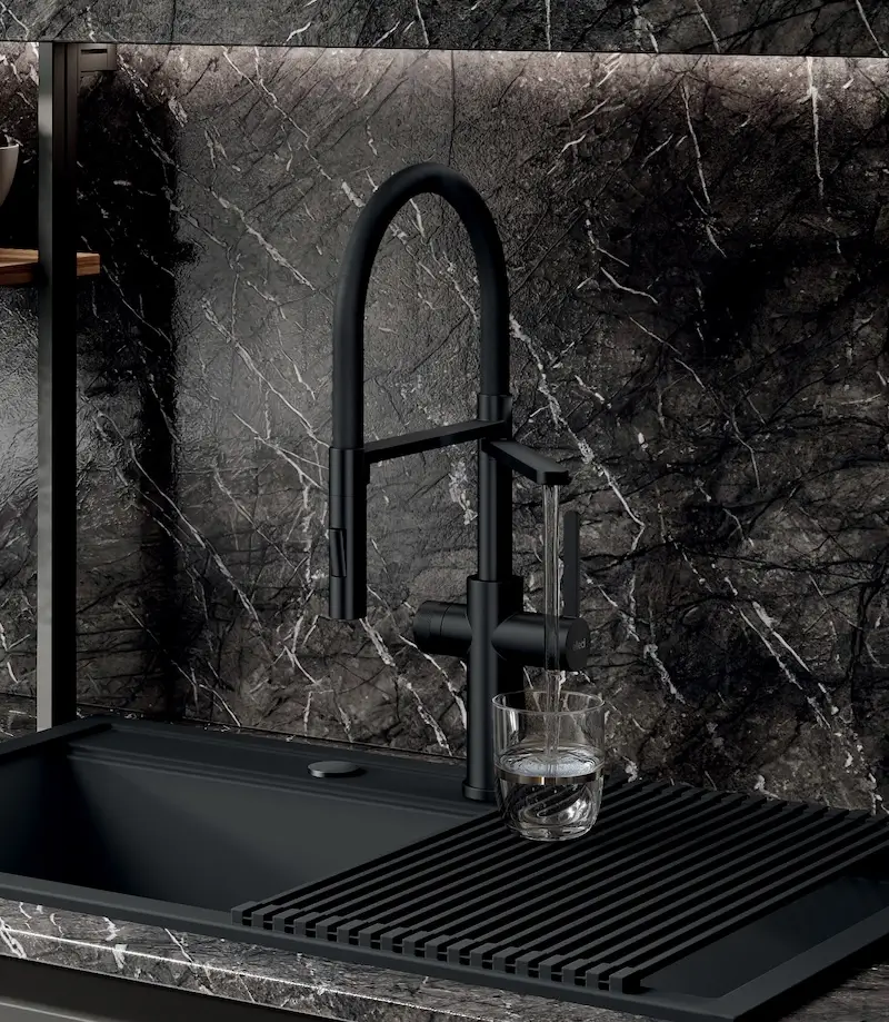 I miscelatori colorati sono veri complementi d’arredo per una piacevole esperienza visiva. L’inedita finitura Black Matt interpreta le più moderne tendenze stilistiche.